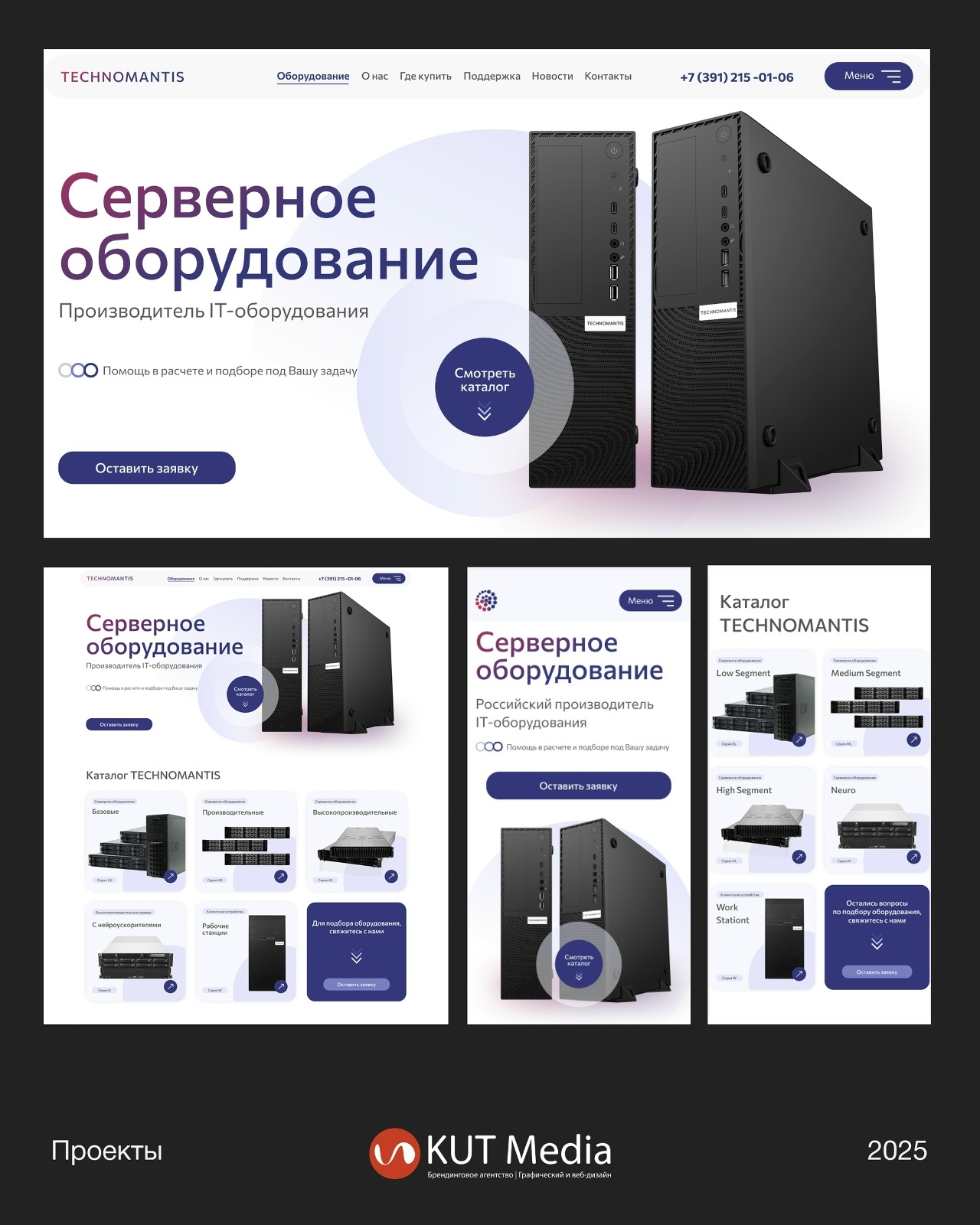 6) Разработка фирменного стиля для производителя серверного оборудования и дизайн сайта. kutdesign.ru/techo