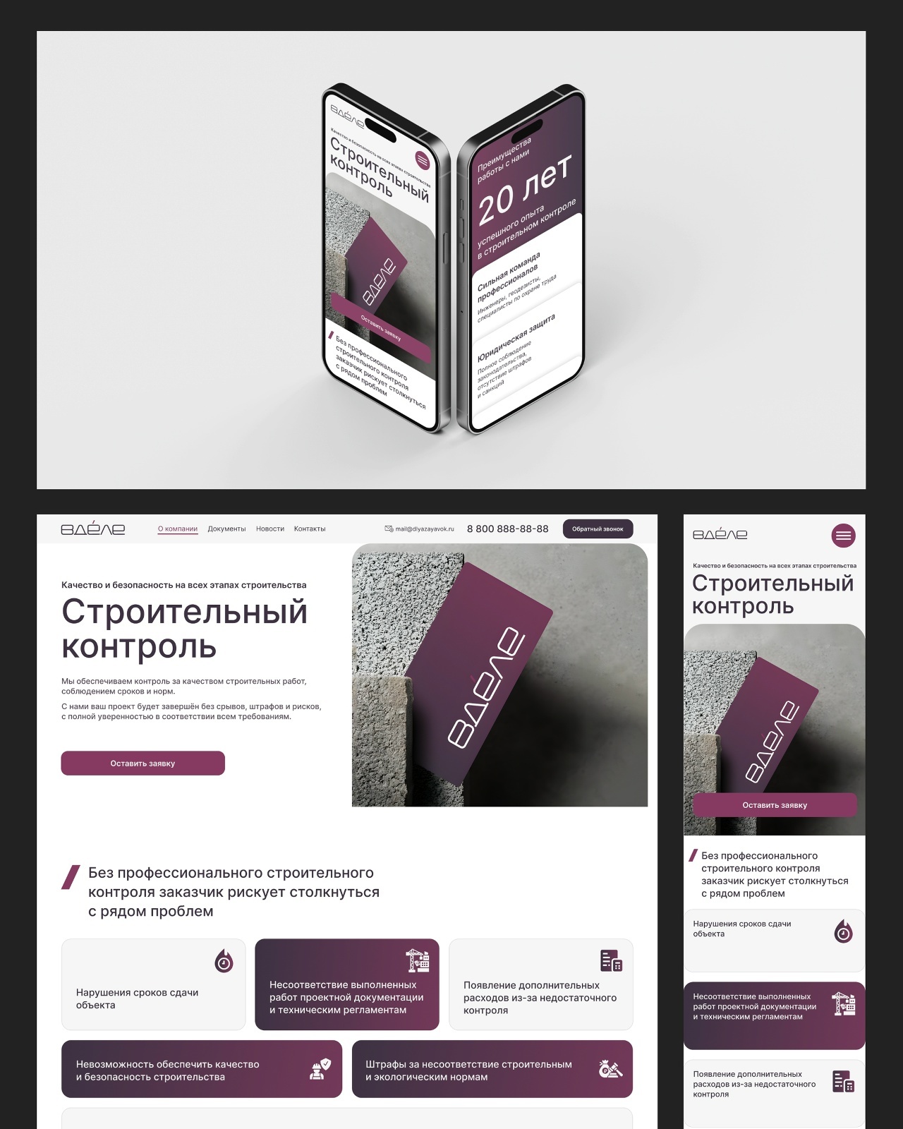 7) Дизайн сайта для строительной компании kutdesign.ru/vdele